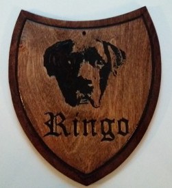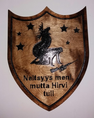 Lakattu personoitu kilpi, vuosipäivät, oma vaakuna, lasten syntymä yms.
